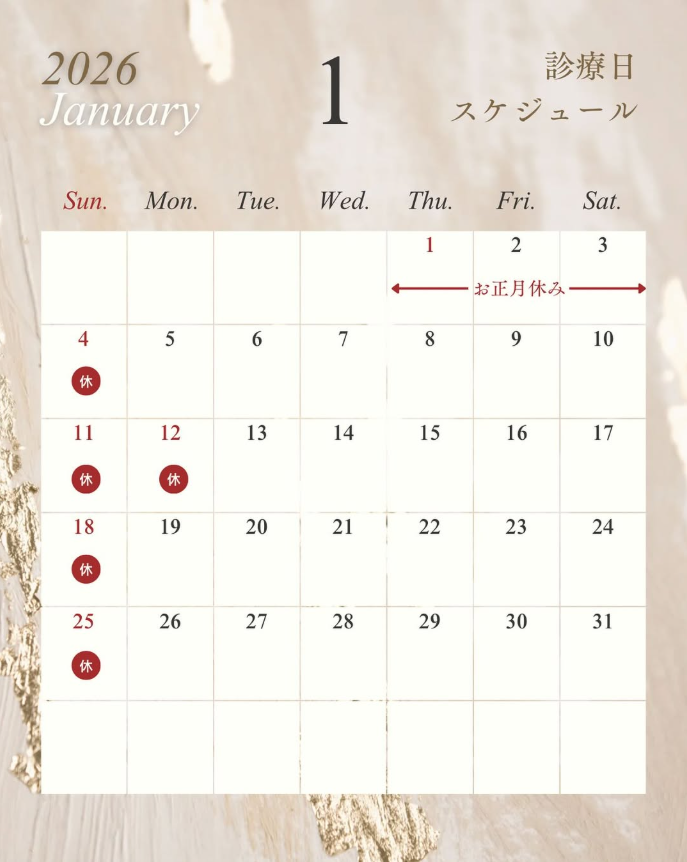 新年は1月5日(月曜)から通常通り診療いたします。今年もよろしくお願いいたします!
