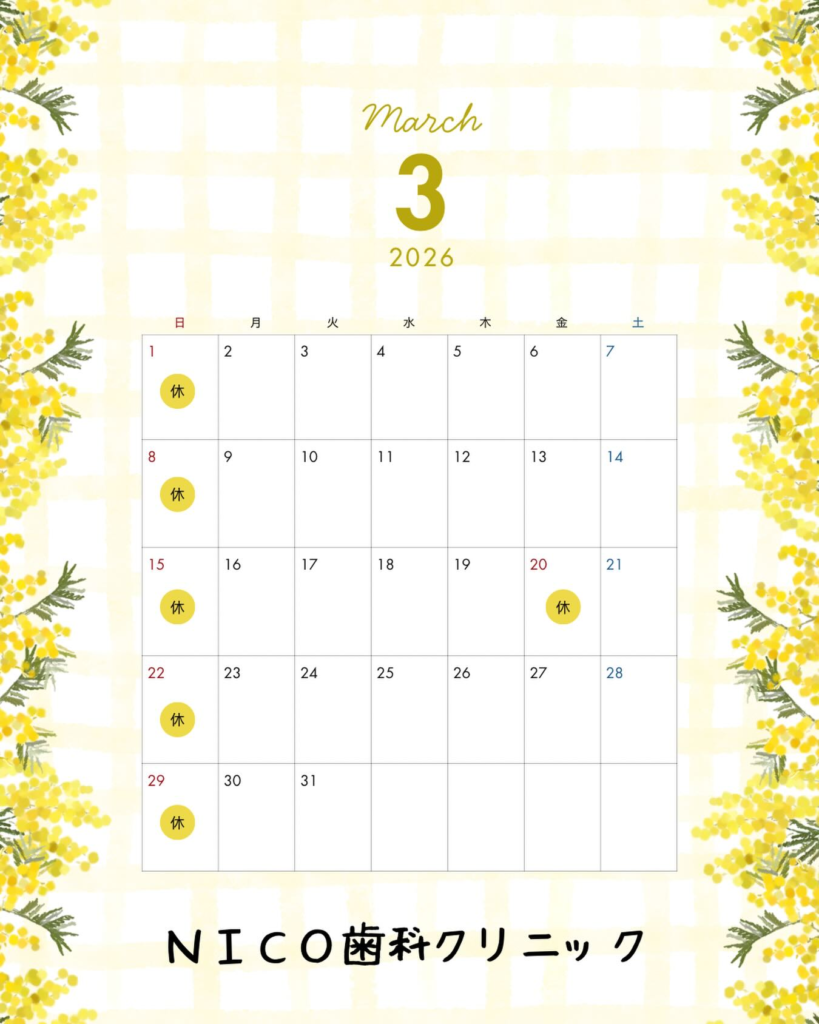 3月の診療カレンダーをお知らせします!よろしくお願いいたします✨
